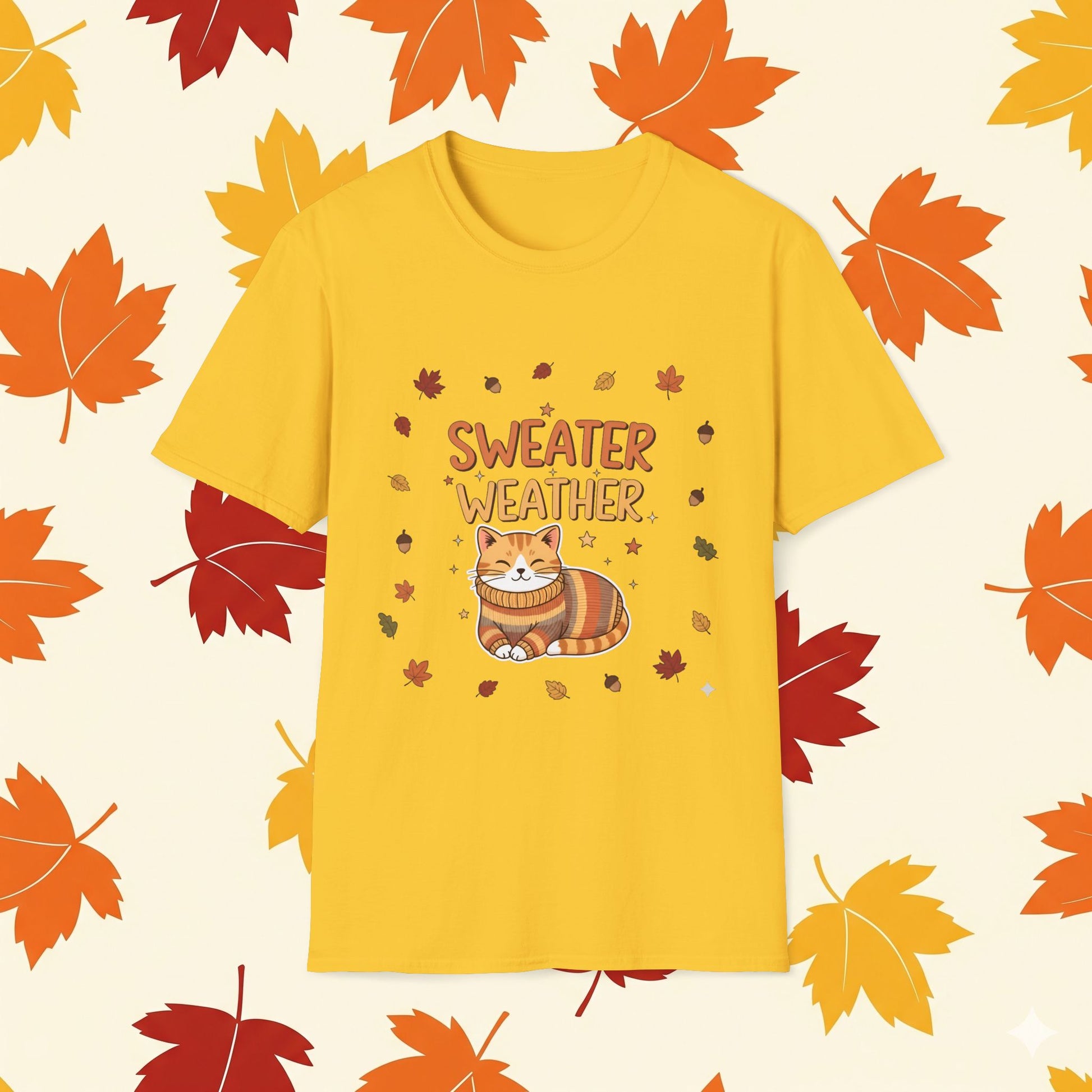Embrace the cozy vibes of the season with this Unisex Softstyle T-Shirt, designed to make every autumn day feel special. Featuring a cheerful "Sweater Weather" print with whimsical autumn leaves, this shirt is perfect for those who love to celebrate the fall season. Ideal for casual outings, family gatherings, or cozy nights in, it’s an excellent choice for anyone who enjoys seasonal style and comfort. Great for sweater weather celebrations, Halloween, or Thanksgiving get-togethers, it’s a delightful addition to any wardrobe. Whether you're a student, a parent, or anyone in between, this t-shirt is a versatile piece that fits perfectly into your lifestyle, adding a playful touch to your fall attire.